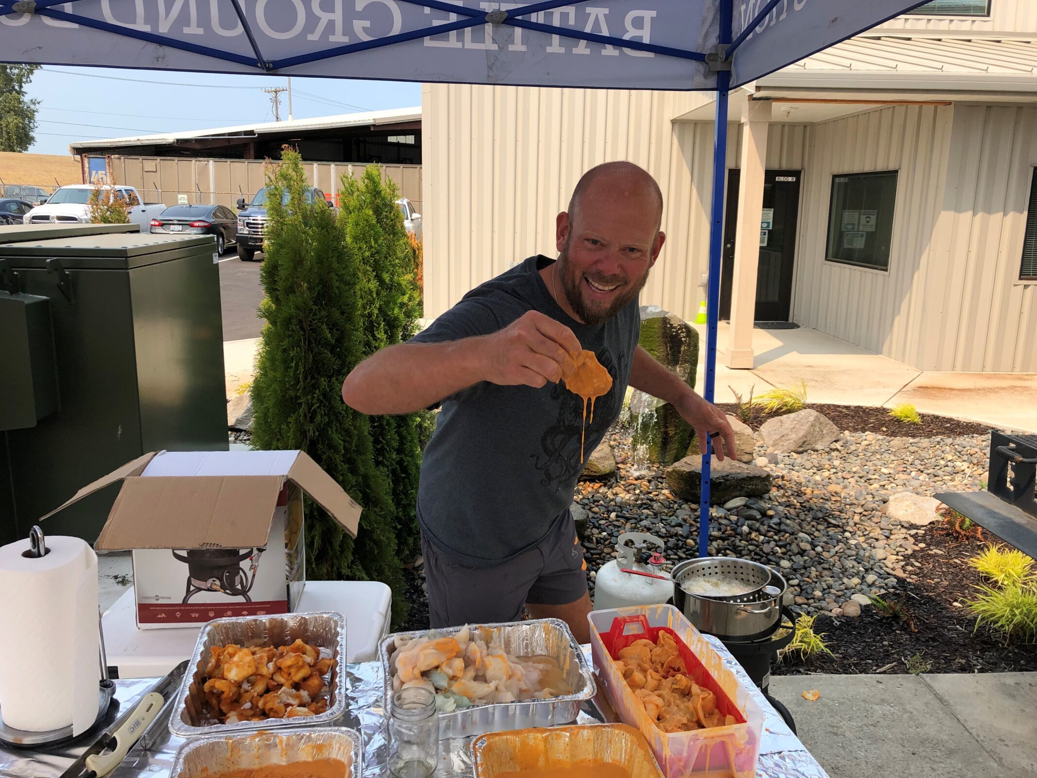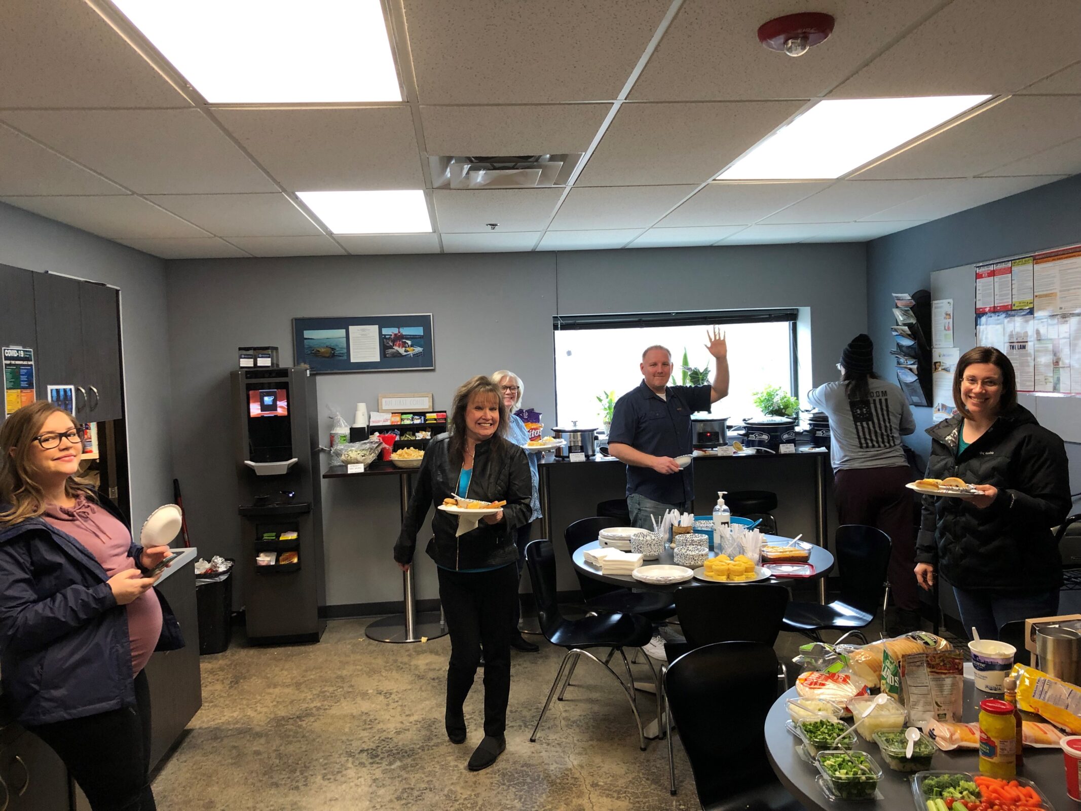 Jesse Hutton, President/CEO, was the master chef marinating the fish in his famous beer batter before frying them. Team members contributed sides and desserts to the fish fry potluck lunch.
