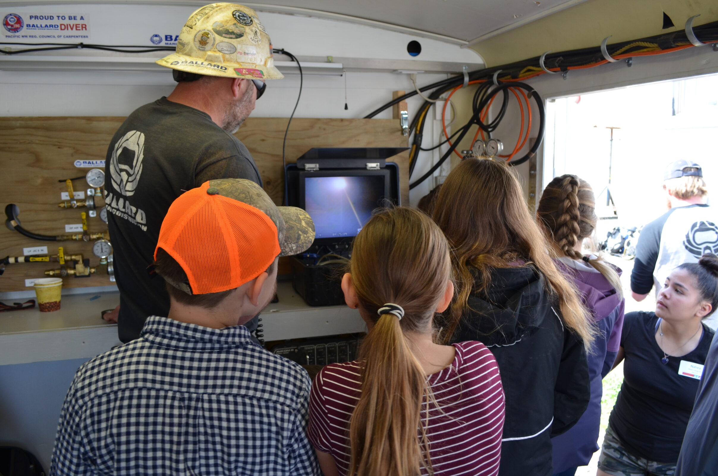 At Ballard, we encourage STEM learning and host an interactive Take Your Kids To Work Day for our team members kids. In this photo, a live diving demonstration is taking place and kids could view the diver working in the tank, as well as join the Dive Supervisor in the trailer to see a live video feed and talk to the diver.