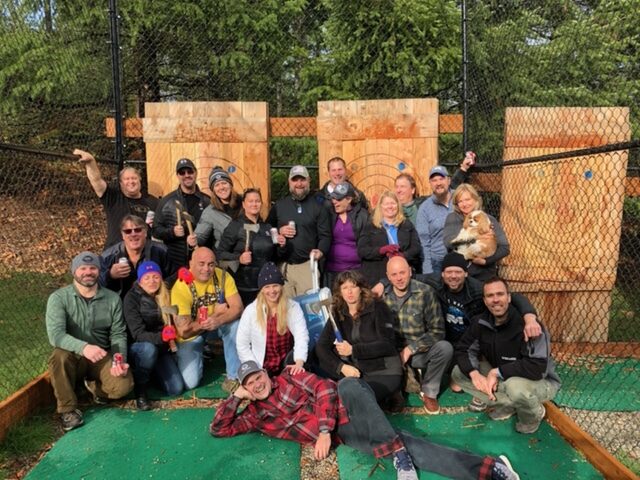 The Ballard team works hard and plays hard. Here, the team is having fun with some healthy axe throwing competitions.
